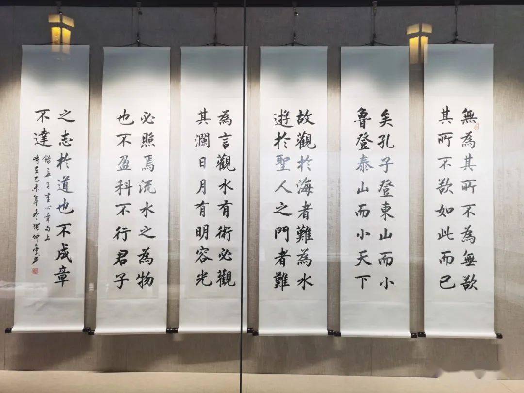 谈起这次展览,张仲亭先生说:“就是要宣传好泰山文化,对泰山文化留点墨迹,使大家对泰山文化有个深刻的认识。泰山文化,杜甫的《望岳》诗就是个代表,全运会这么大的场面,就用了这一首诗,而且呢,一山一水一圣人,各具特色,希望咱泰山领导下一步对杜甫的《望岳》诗,应该加点宣传分量。书法的历史文化是由历代书法家创造的,我们这一代的书家,如果不能给社会,给这名胜古迹,给这历史文化景点,留点东西,这将是我们的缺憾和不足。”