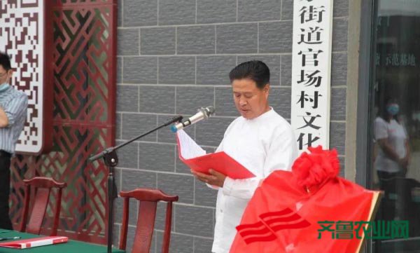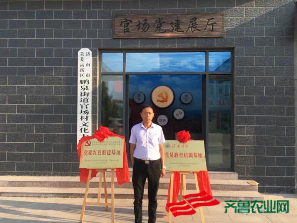 济南大学党委组织部张培国部长与官场村党支部副书记吕清祥一起为党建联建基地揭牌。