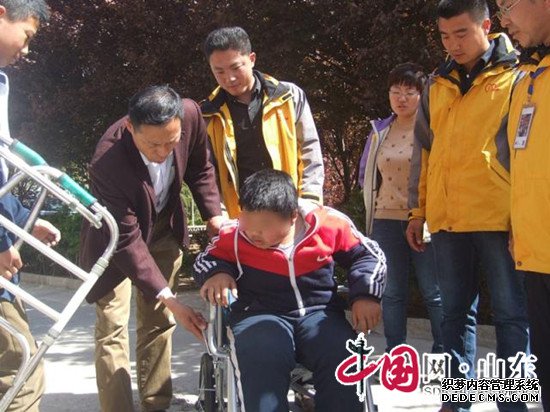 中国网山东频道4月22日讯(记者 王汉卿) 近日,由中国网山东频道发起的“2015温暖齐鲁·圆梦中国 ——爱心使者在行动”的爱心人士李振伟和志愿者们带着精心准备的书包、学习用品、米面、食用油、轮椅、等用品,来到了泰安肥城市边院镇中学和营盘村,为那里的病残孩子和老人送去了一份温暖。