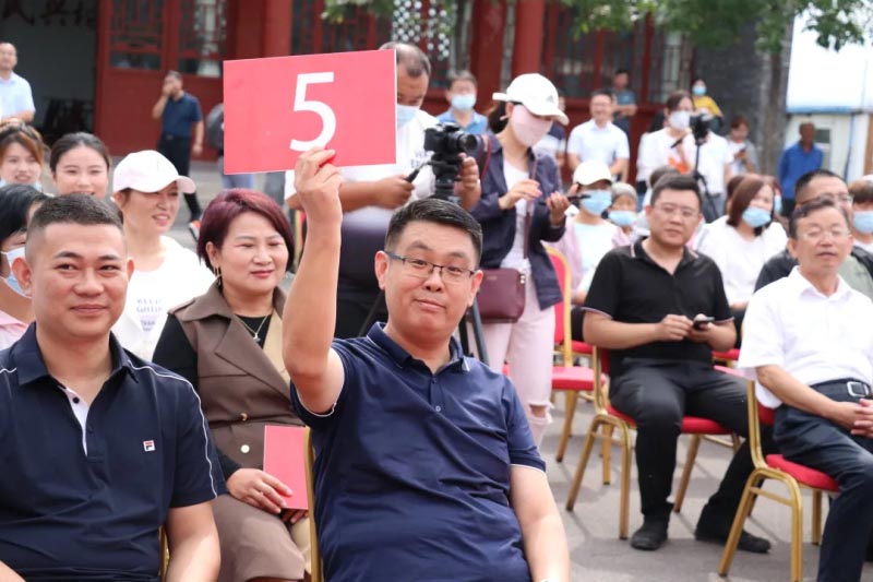 会后,现场举行了佛桃“桃王”拍卖活动,经过多轮角逐,最后山东龙恩电力有限公司以12000元的价格笑到最后……