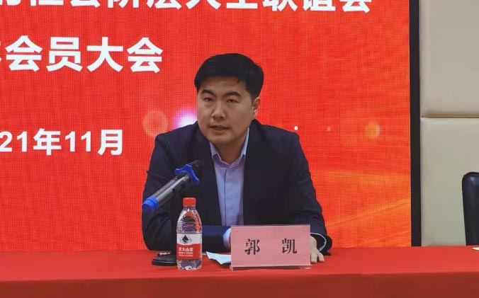 中共济南市历城区委常委、统战部部长郭凯代表区委统战部向新当选的济南市历城区新的社会阶层人士联谊会领导班子成员表示热烈的祝贺!他表示新的社会阶层人士是建设中国特色社会主义的重要力量,希望济南市历城区新的社会阶层人士联谊会在政治思想上过硬,当好引领者;在创新创业上过得硬,当好开拓者;在社会形象上过得硬,当好模范者;在自身建设上过得硬,当好组织者。不断充实新联会队伍,努力建立一支高素质的代表队伍。