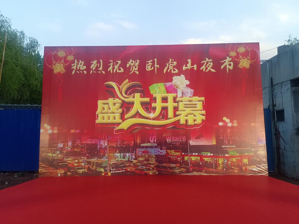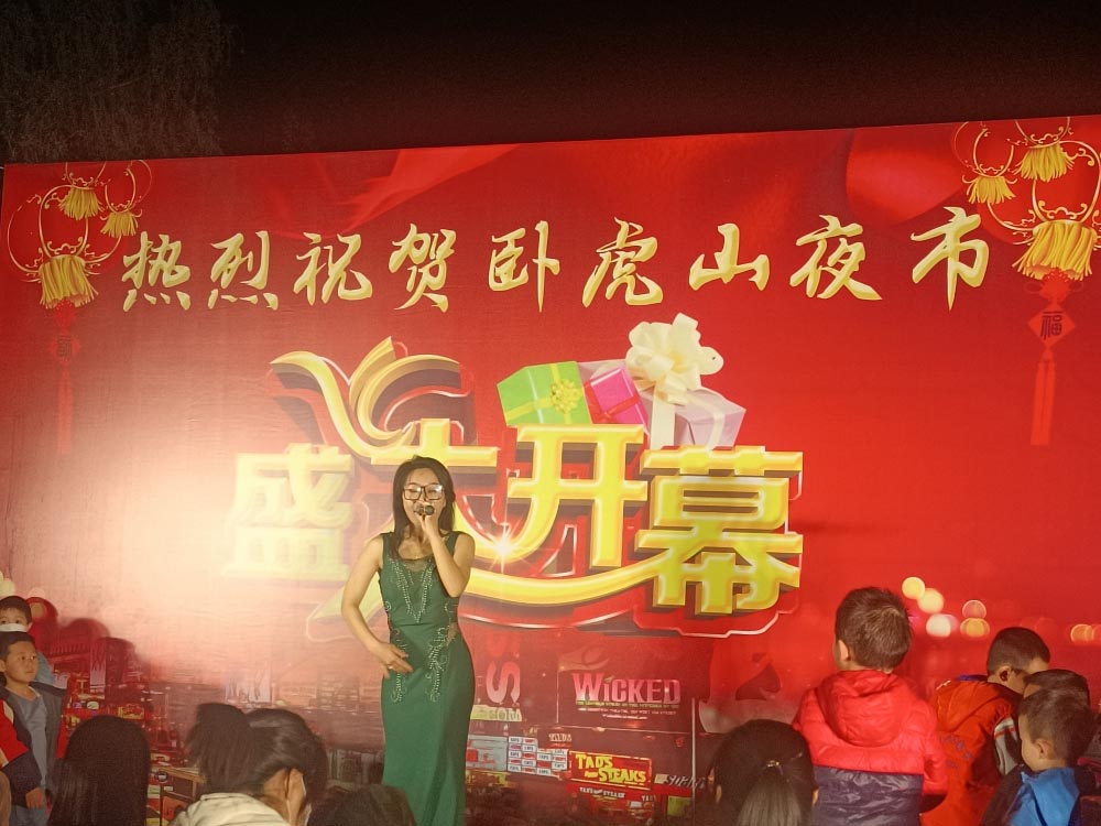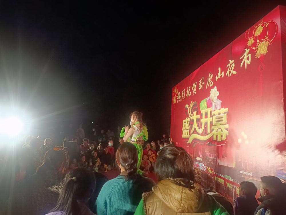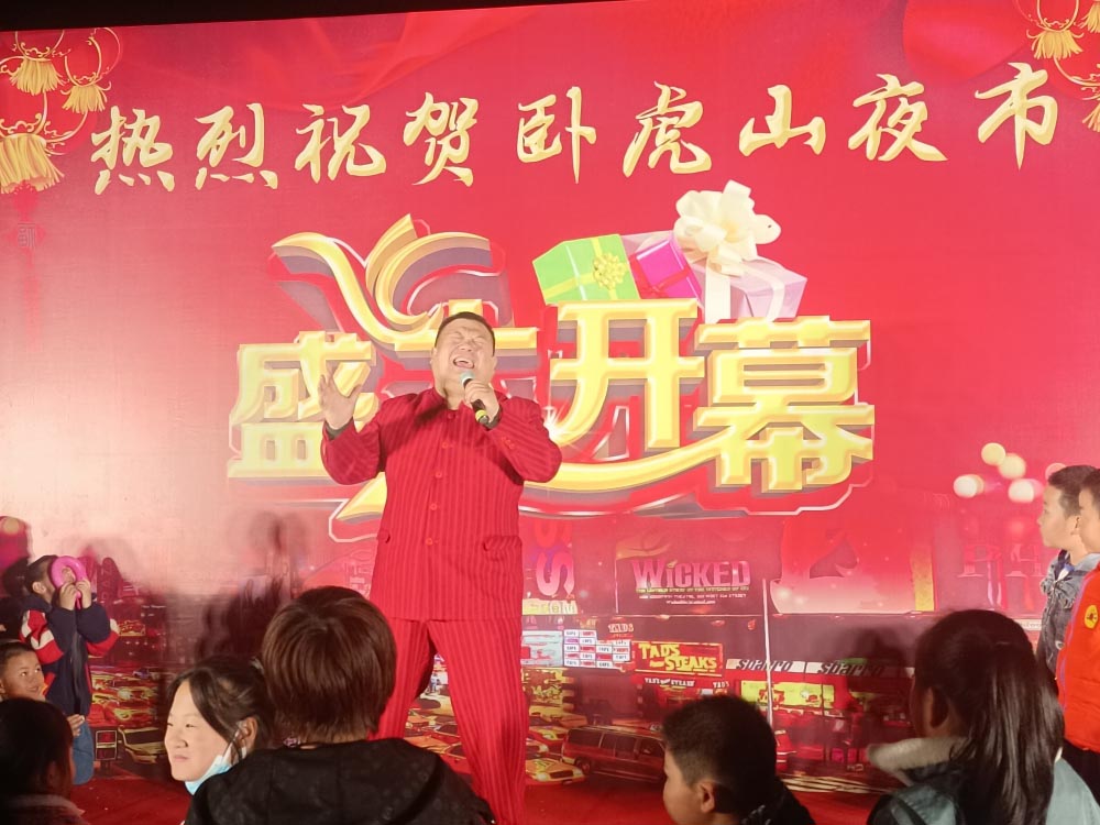 往日平静的山东省泰安市岱岳区天平街道卧虎山夜市,2023年4月16日晚,夜市开始了,一场热烈祝贺卧虎山夜市盛大开幕文艺演出,吸引周边群众观赏,犹如巨石落湖激起春水浪花。