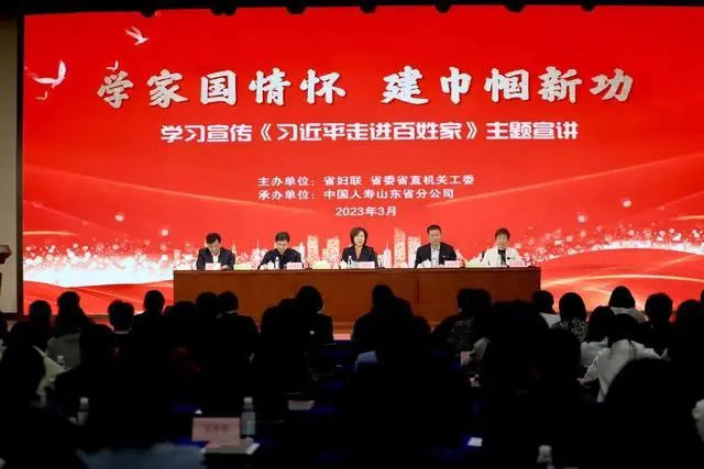 3月6日,山东省妇联、省委省直机关工委在济南共同举办“学家国情怀 建巾帼新功”学习宣传《习近平走进百姓家》主题宣讲活动,省妇联党组书记、主席孙丰华出席活动并讲话,中国人寿山东省分公司党委书记、总经理淡新虎致辞,省委省直机关工委副书记王树山主持,省妇联党组成员、副主席王洪霞宣读受表彰名单,中国人寿山东省分公司党委委员、副总经理刘宁参加活动。